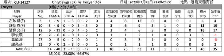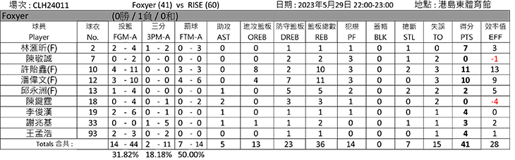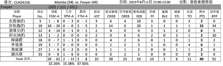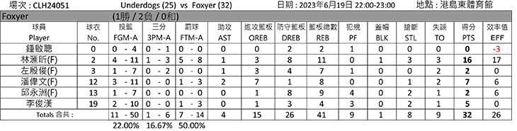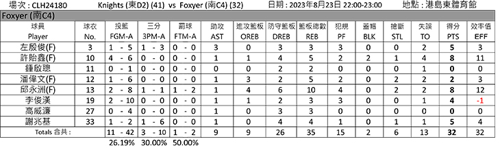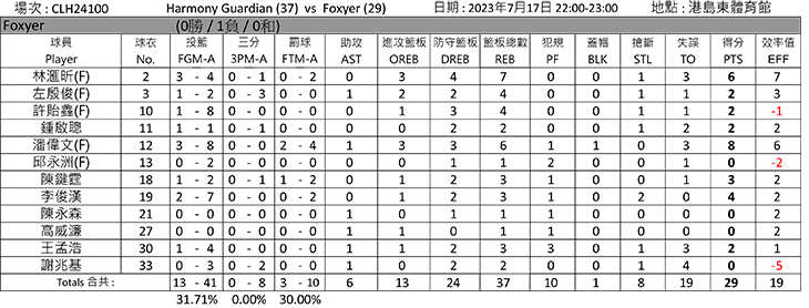 港島南部賽區(第一輪常規賽總積分表)